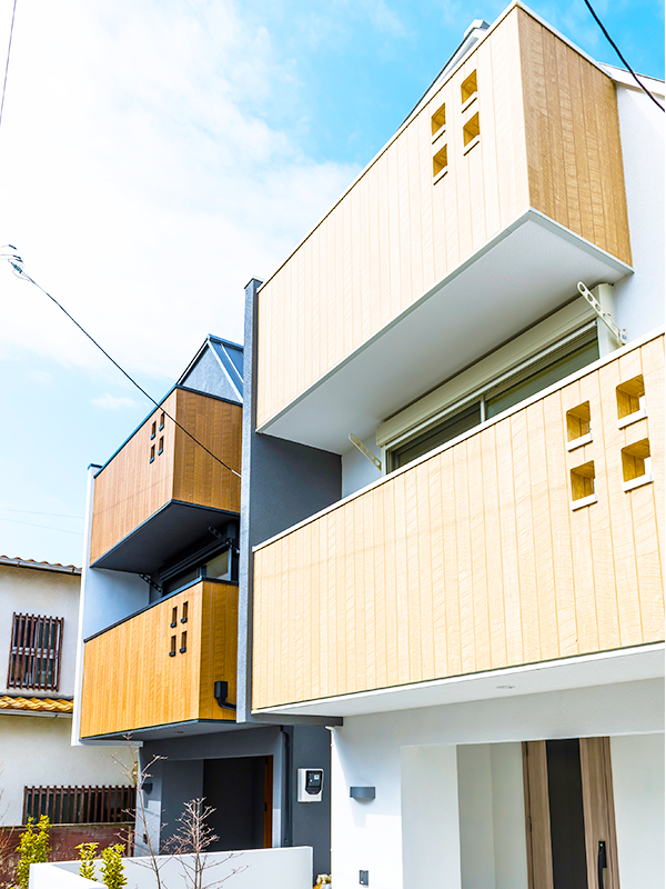 トラディショナルとコンテンポラリーの融合。アップデートを続ける建築技術により、 木造建築は住宅の新たなスタンダードとして、戸建をはじめ、中高層ビルやマンションが増えています。 自由度の高い設計を活かし、狭小地や変形敷地に柔軟に対応し、土地の価値を最大限に高める集合住宅をご提供します。